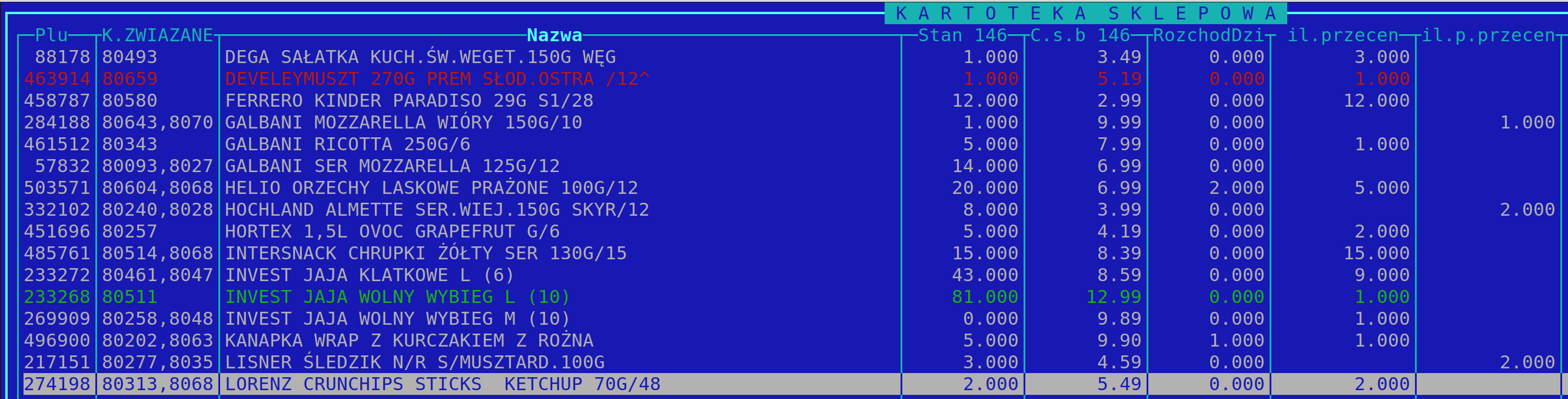 Powyższe zestawienie pokazuje wszystkie towary które były przecenione i mają jeszcze jakiś stan różny od 0.