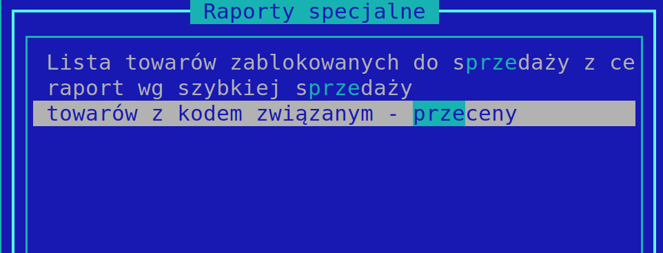 Aby sprawdzić ile przecenionego towaru mam na stanie wchodzimy do Towarowego/Sklepowego należy nacisnąć ctrl + n  wybierać Raport  towarów z kodem związanym - przeceny.