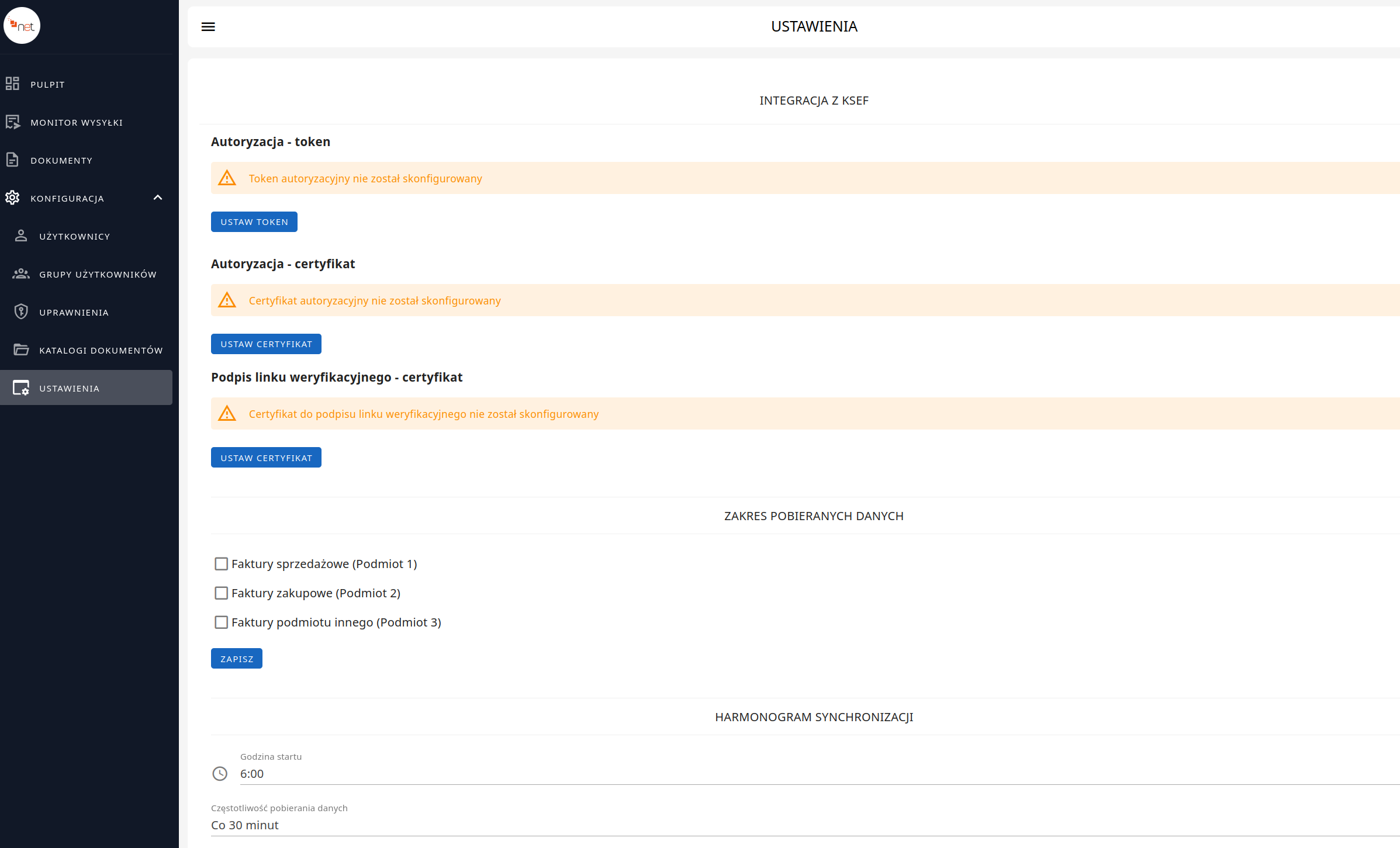 W konfiguracji KSeFNet możliwe jest: