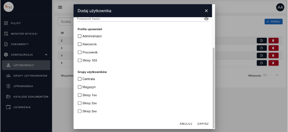 • konkretnych sklepów ( moduł Użytkownicy → +Dodaj → Grupy Użytkowników)